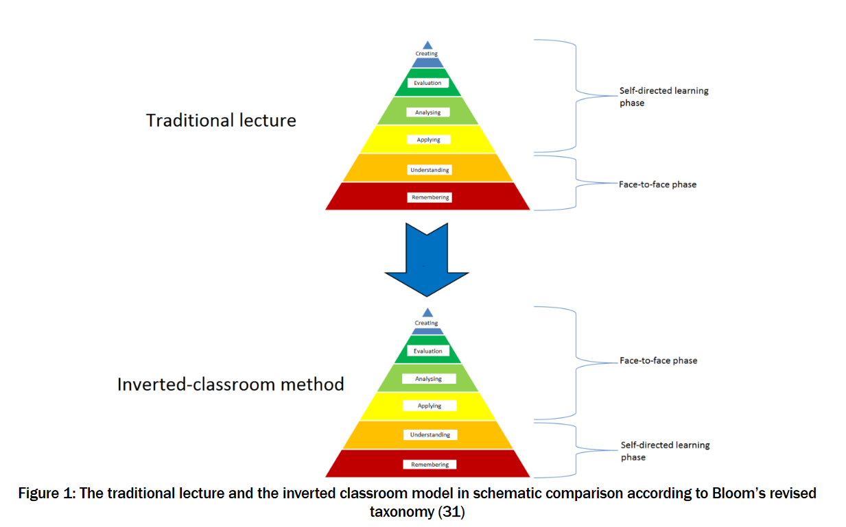 Per our discussion, higher-order thinking skills (i.e. applying, creating, etc.) take place during live sessions (face-to-face or online). The study was a focus in the health care field to promote more student-centered learning activities (problem-based and research-based learning). If this is promoted in higher education learning, we ideally would promote this as a department with faculty, staff, and administrators.